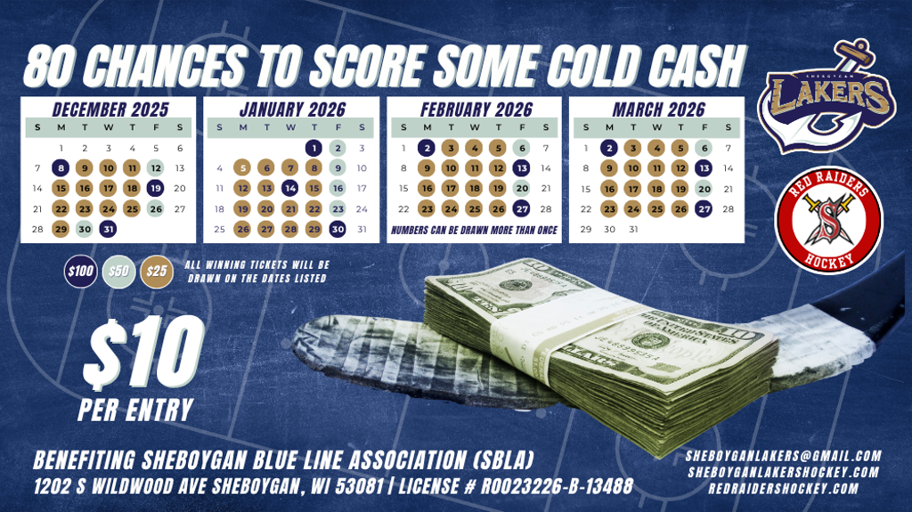 The calendars have a QR code on them that is linked to the Lakers website where the winners will be listed, special events, Red Raiders game schedules and where you can download your free open skate ticket.